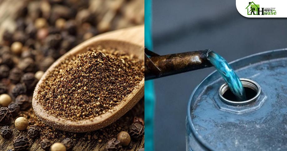 พริกไทยดำบดหรือพริกป่น โรยตามมุมห้องหรือทางเดินหนู