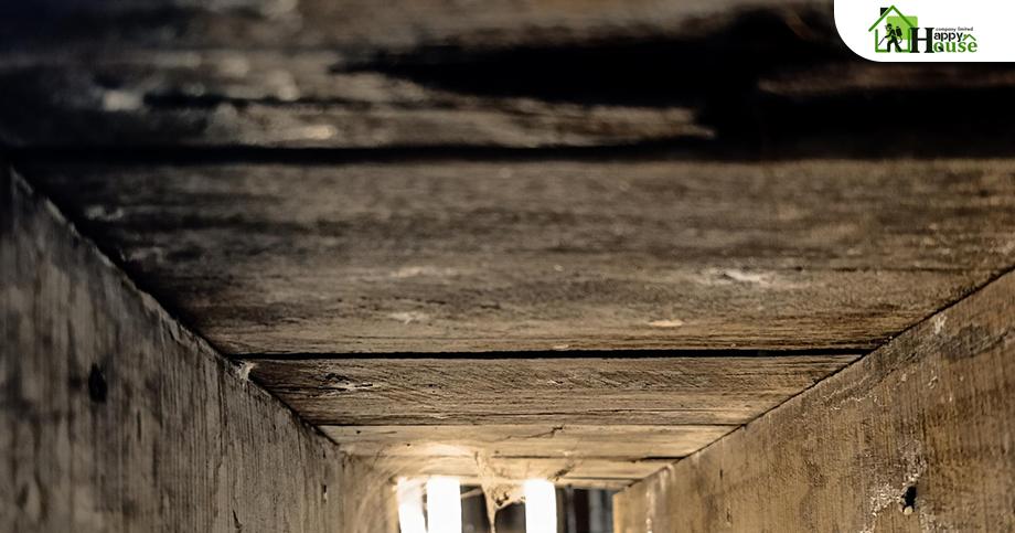 พื้นที่ใต้พื้นบ้านมักชื้นสะสม เนื่องจากขาดการระบายอากาศ และยังเป็นจุดที่เจ้าของบ้านไม่ค่อยสังเกตเห็น