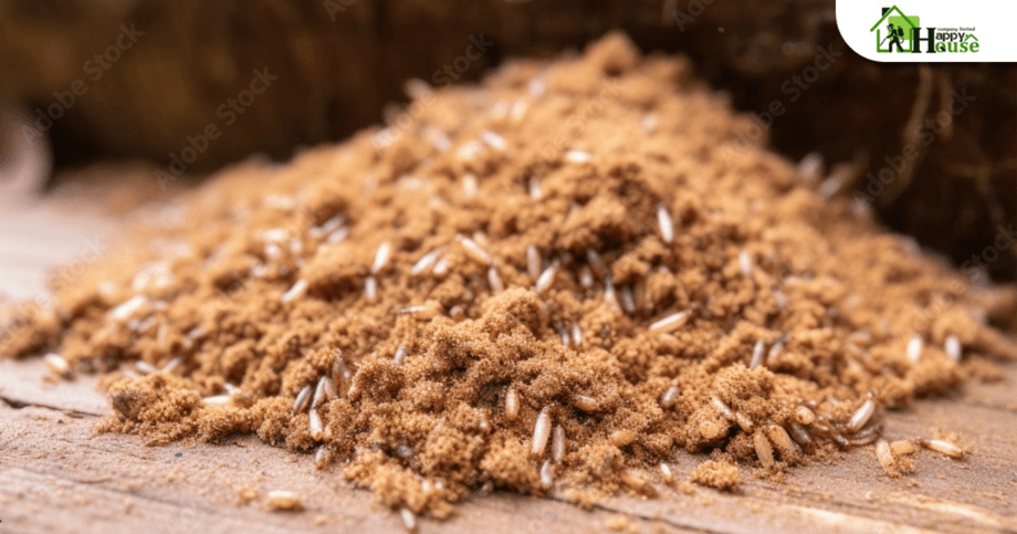 3. พบเศษผงไม้เล็กๆ หรือมูลปลวก ตามซอกพื้นหรือขอบบัว มักเป็นร่องรอยของการกัดกินไม้